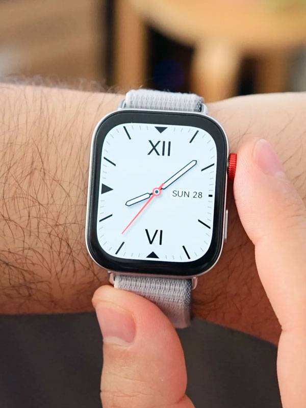 یکی از ویژگیهای برجسته در طراحی این مدل، نمایشگر بزرگ و مربعی شکل آن است. صفحه نمایش ۱.۸۲ اینچی AMOLED با رزولوشن ۴۰۸ × ۴۸۰ پیکسل، تصاویر و رنگها را با وضوح و شفافیت فوقالعادهای نمایش میدهد. با روشنایی ۱۵۰۰ نیت، حتی در زیر نور مستقیم آفتاب نیز میتوانید به راحتی محتوای صفحه را مشاهده کنید. این نمایشگر بزرگ، نه تنها تجربه کاربری روانتری را فراهم میکند، بلکه فضای بیشتری برای نمایش اطلاعات سلامتی و نوتیفیکیشنها در اختیار شما قرار میدهد. قابلیت نمایشگر همیشه روشن (Always-on Display) نیز یکی دیگر از مزایای این ساعت است که به شما امکان میدهد بدون نیاز به روشن کردن کامل صفحه، زمان و اطلاعات کلیدی را ببینید.