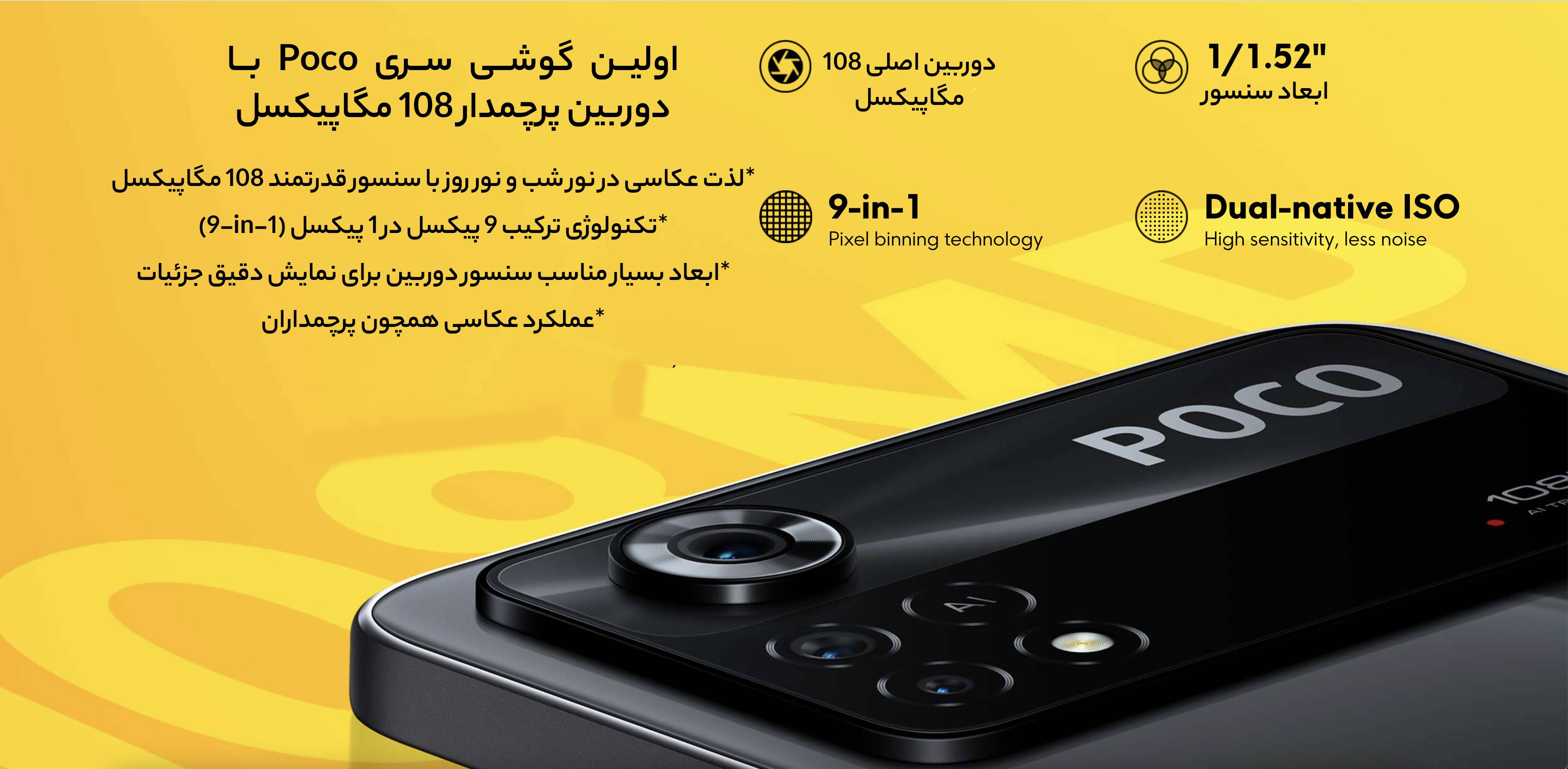 در بخش سنسورهای دوربین هم شیائومی Poco X4 Pro توانسته است عملکرد بهتری به نسبت شیائومی Poco X3 Pro داشته باشد. یک سنسور دوربین اصلی قدرتمند با رزولوشن ۱۰۸ مگاپیگسل از نوع عریض و گشودگی دریچه دیافراگم f/1.9 در کنار سنسور ۸ مگاپیکسل از نوع فوق عریض (ultrawide) با زاویه دید ۱۱۸ درجه و سنسور ۲ مگاپیکسل از نوع ماکرو برای ثبت تصاویر از فاصله نزدیک، سنسورهای دوربین سهگانه این گوشی هوشمند میانرده را تشکیل میدهند.