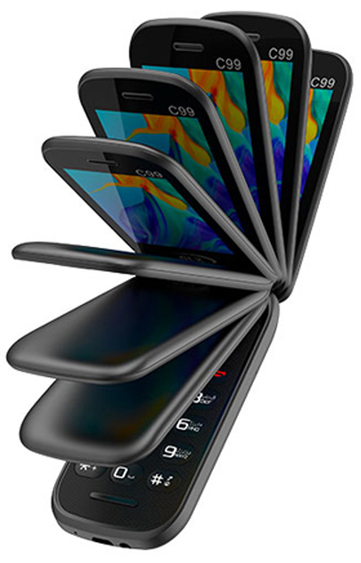 گوشی C99 با طراحی تاشوی عمودی (Flip) و ابعاد 110×50.5×19.9 میلیمتر، حس نوستالژیک تلفنهای کلاسیک را زنده میکند. بدنهی پلاستیکی آن در رنگهای مشکی و آبی عرضه شده و با وزن سبک، حملونقل آسانی دارد. وجود چراغقوهی قدرتمند در بالای دستگاه، استفاده در محیطهای تاریک را تسهیل میکند.
